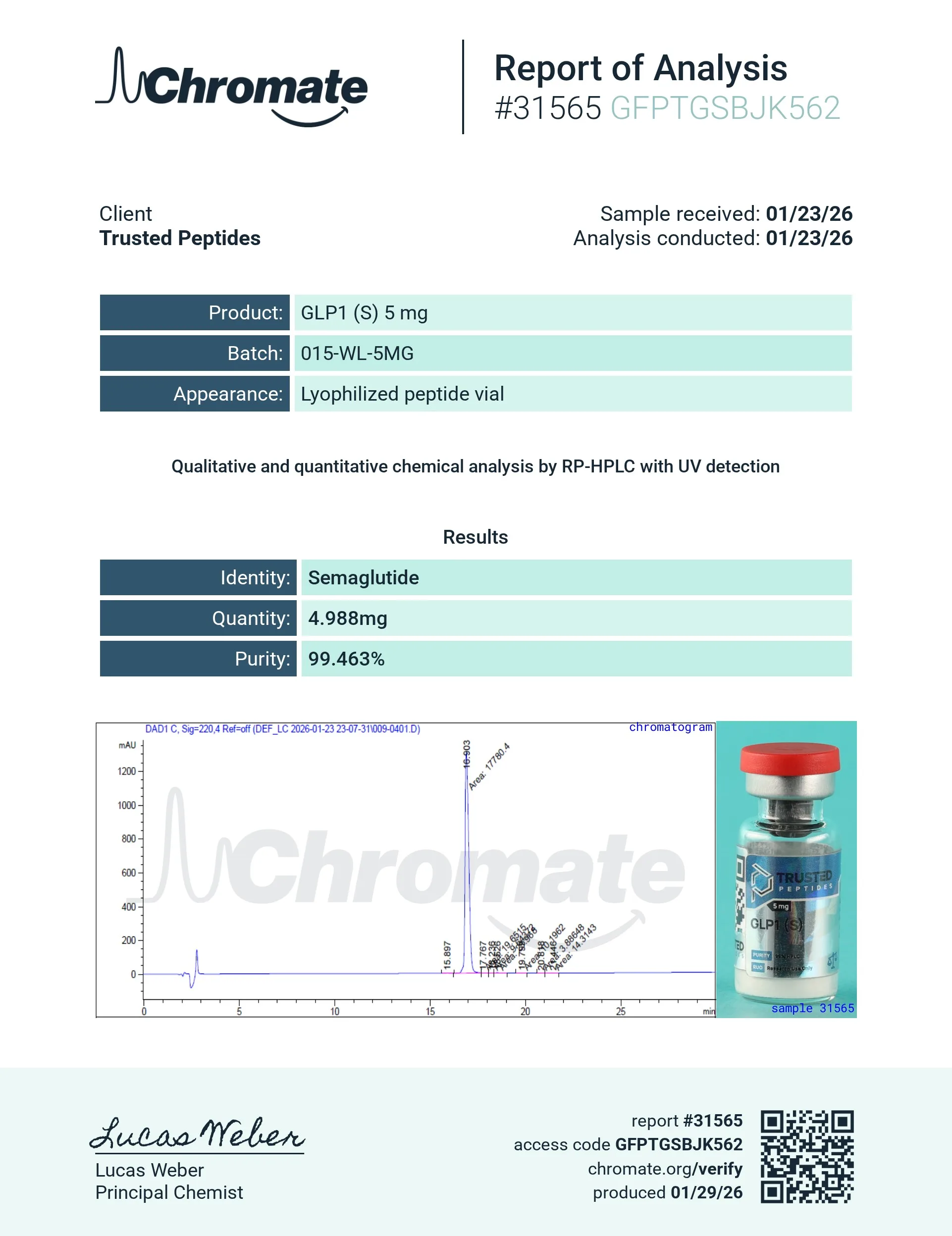 A research-grade Glucagon-Like Peptide-1 (GLP−1) receptor agonist. This peptide is at the forefront of metabolic science, studied for its powerful effects on glucose homeostasis, appetite regulation, and promoting a feeling of satiety, making it a key compound in weight management research.